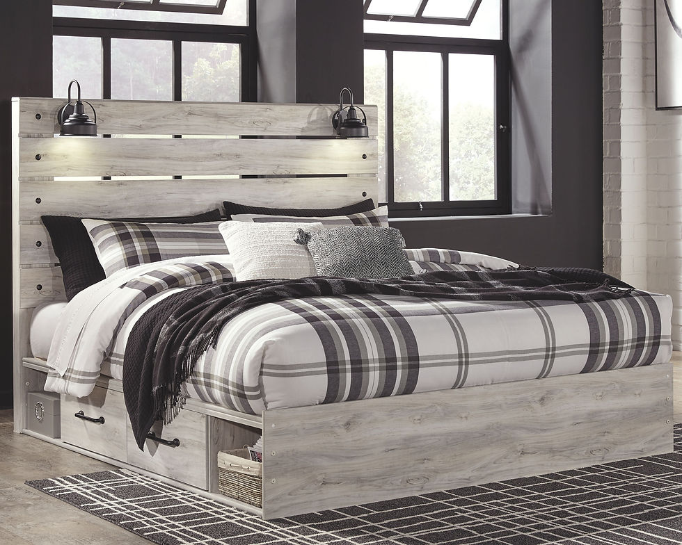 Cambeck - Whitewash - King Panel Bed with 4 Storage Drawers